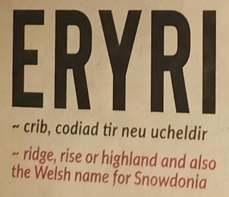 Academics now agree that ‘Eryri’ means ‘highlands’ (not ‘place of eagles’ as many sources used to say – and still do). ‘Eryri’ derives from the word eryr, meaning ‘ridge, rise, upland region or highland’; this word is related to the Latin word oriri (‘to rise’) and its plural form is eryri. ‘Eryri’ therefore does not come from either eryr (eagle) or eira (snow), although somewhat similar, for the plural form of eryr is eryrod or eryron, not ‘eryri’.
